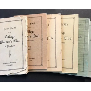 On June 17, 1921, the College Women's Club of Pasadena held its first meeting at the Shakespeare Club. Mrs. Marie Hinrichs, wife of a Cal Tech professor, was elected President and dues were set at $1.00 per year. Two years later, in 1923, the Club had 206 members representing 59 colleges. Currently, over 100 years later, the Club continues to adhere to its original purposes, providing scholarships and fellowships to deserving women in local colleges as well as providing social and intellectual opportunities for women in the Pasadena area.